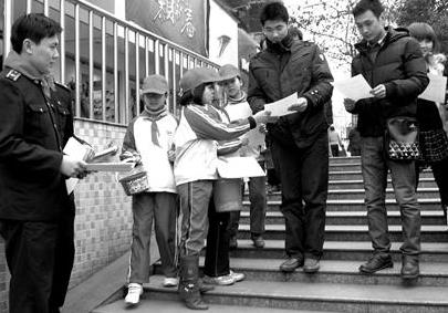 荆楚网消息 (三峡晚报) 3月4日下午,刘家大堰小学100余名“学雷锋文明小卫士”来到夷陵广场地下通道开展学雷锋系列活动。少先队员代表发起“关心城市、爱护城市”倡议,聘请宜昌市城市管理监察支队城管便民岗队员作为校外辅导员。少先队员还和城管队员携手清理地下通道内墙壁上各种小广告。 记者郑联学 通讯员 武昆 宋文明摄