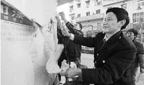 1月15日下午,西陵区开展了“干干净净迎新年”大型整治活动,此次活动共清理野广告600多处,清除垃圾共计16车80吨。本报通讯员 王晶华 罗观 摄