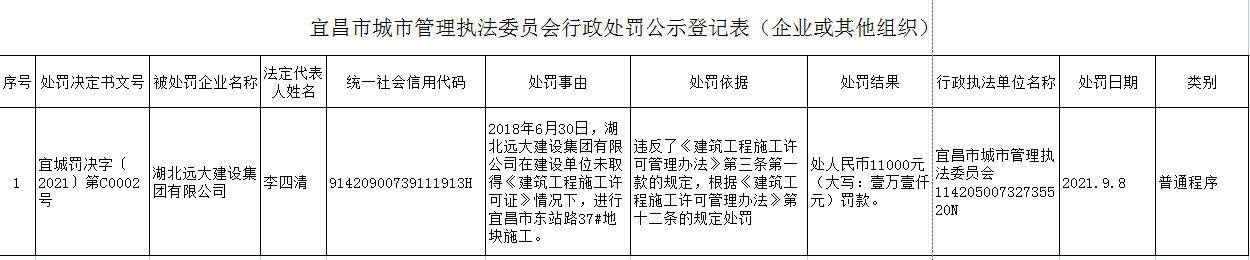 宜昌市城市管理执法委员会行政处罚公示