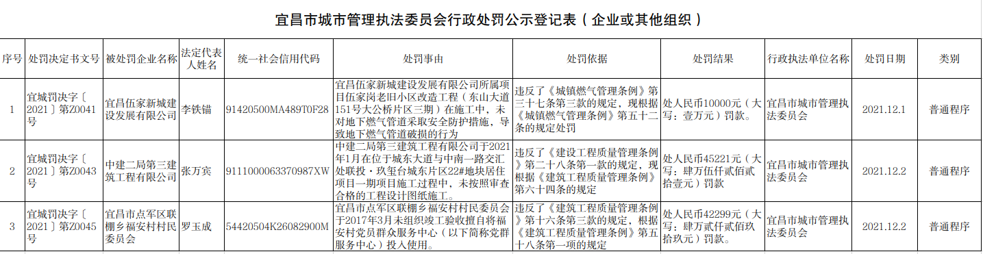 宜昌市城市管理执法委员会行政处罚公示