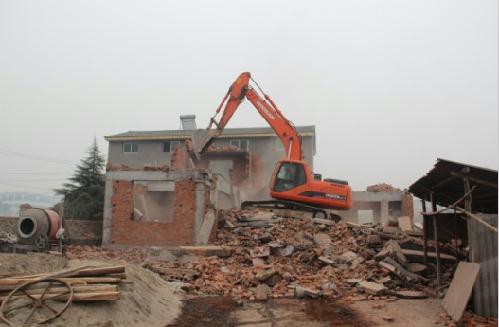 此次行动在西陵区政府的精心组织下,市城管局西陵大队、公安、交警、消防、卫生等职能部门通力协作,组成近100余人的执法队伍,出动大型拆违机械,对沙河村沿线郑某的违法建筑予以拆除。