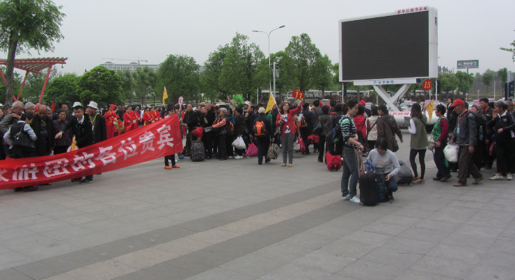 本网讯(通讯员 郭承锐、郑桂莲)4月25日上午,宜昌东站广场迎来了“五一”假期首趟旅游专列“敬老号”。该旅游专列旅游人员受到了宜昌市民的热烈欢迎。大家欢快地打着腰鼓,拉起了欢迎横幅,热情欢迎远方客人到来。