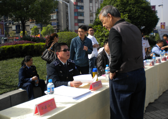 26日早上,参与活动的城管执法人员刚上岗,便吸引了众多群众的围观咨询“我要换广告招牌该怎么办手续?”“我家房屋漏雨,想在屋顶加盖一层防漏行不行?”“我门面开张,开业当天做一个彩虹门宣传一下,该办什么手续?”,面对围观群众的争相咨询,城管执法人员一一作答,直到群众完全了解审批流程。仅26日上午,城管展台便接受群众咨询150余人次,发放《城乡规划法》等城管法规宣传材料200余份。