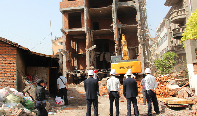 据了解,去年7月,城管部门曾对此违建进行拆除,但赵某仍存侥幸心理,今年初,此违建又“死灰复燃”。在拆除现场违法当事人的情绪相当激动,准备了汽油、汽油弹等危险易爆物品用以抵抗。城管队员对当事人动之以情,晓之以理,最终,经过九个小时的连续“作战”,该处违章建筑顺利被拆除。