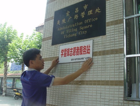 为大力弘扬“学习雷锋,奉献他人,提升自己”的志愿服务理念,市城市管理局夷陵广场管理处按照市文明办精神及局创建办要求:一是设立夷陵广场“学雷锋志愿者服务站”,全体干部职工均为志愿者,统一培训上岗;二是一方面在人流量密集的公汽车站开展志愿服务社会公益宣传;另一方面为市民游客免费提供便民服务伞、便民针线包、药品等服务。