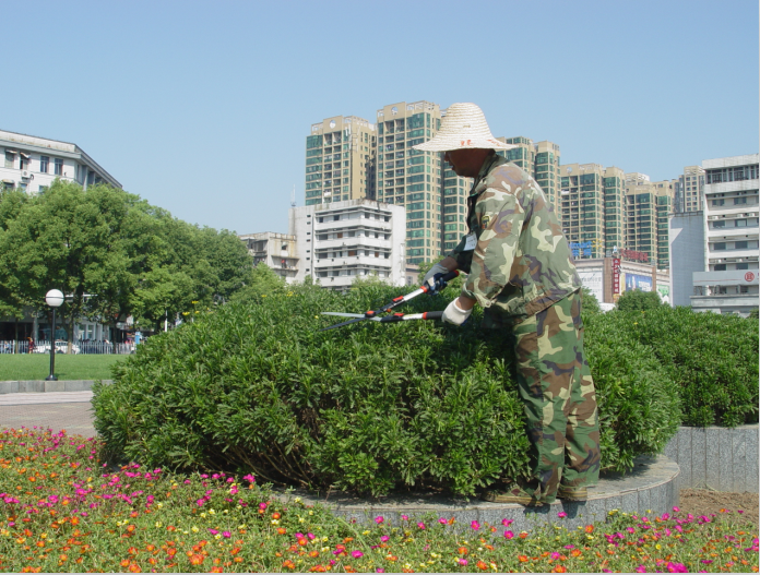 夷陵广场:给草坪植物“理发” 清爽过“双节”