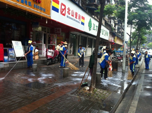 环卫处:清洗夜市污染 路面焕然一新
