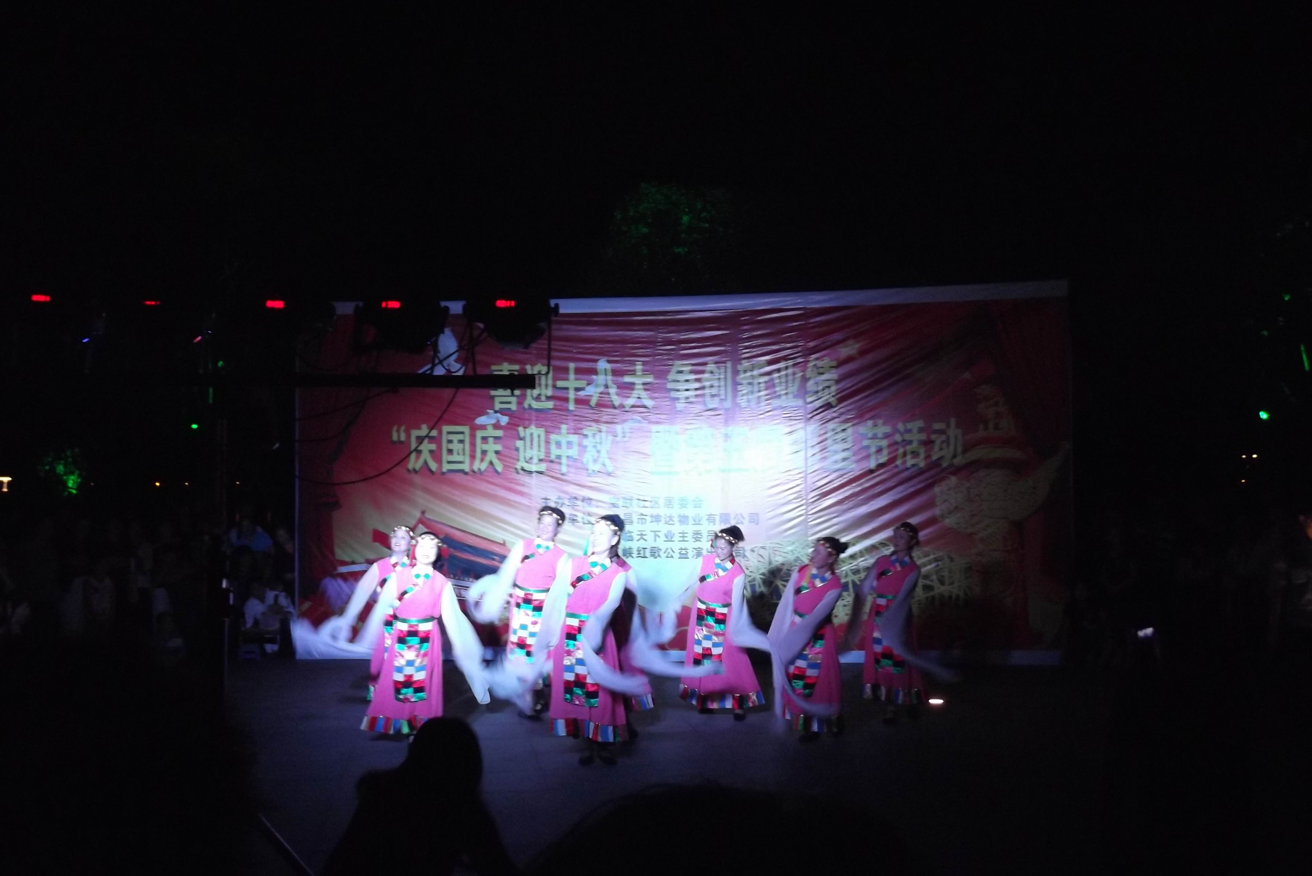 此次演出是宜昌市宝联社区居委会在美丽的桂花园举办的“庆国庆 迎中秋暨第五届邻里节活动”。他们用美丽的歌声、动人的舞蹈,表达中秋祝福,庆祝祖国63岁生日,向党的十八大献礼。