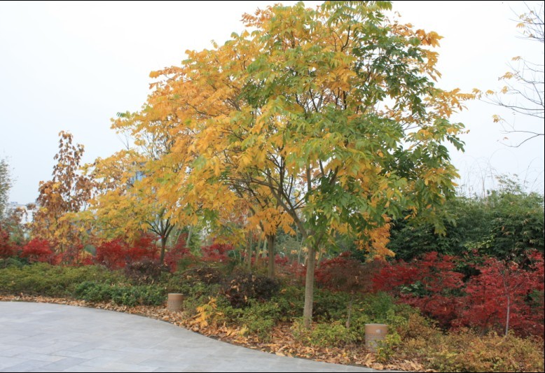 宜昌地区最常见的秋季变色树种有:乌桕、木瓜海棠,部分杉树类等,它们多枝繁叶茂 , 其叶片进入秋季后呈现出红色、紫红色、金黄色等花朵般的绚丽色彩。或是一树即成一景,或是形成了大面积的群体景观 ,又或与绿叶植物相互映衬 ,不论以何种形态出现,都极大地丰富了城市景观的色彩,具有较高的观赏价值。在不经意间瞥见某处的满树金黄,方能意识在秋天来了,如此切身感受才是自然界需要带给我们的。秋色如画,红树间疏黄,色叶植物呈现出绚丽的色彩,为市民提供了良好的秋季休闲环境。