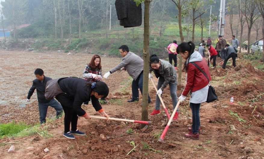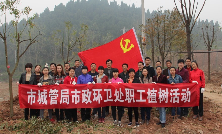 为促进职工间的交流,加强团队间的协作精神,市政环卫处办公室组织了一次职工植树活动,地址选在正在建设中的沙河公园湖畔。参加植树的男女职工混搭组合成了8个小组,每个小组分配两棵树的计划,办公室组织者一声令下,大伙儿立刻干得热火朝天起来,有的稳稳扶住树干、有的用力锄泥铲土、有的跑到湖边提水,在欢声笑语里,不到半天的时间,十六棵樟树全部种植的整齐有序,末了,大家还小心翼翼的给树木挂上种植单位名称的标识牌。今天的植树活动,种下的是友谊、收获的是团结。
