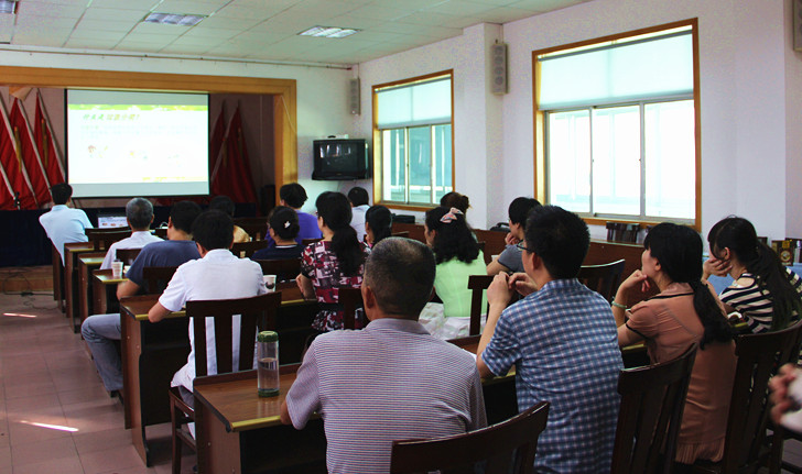 参会人员认真观看宣教短片