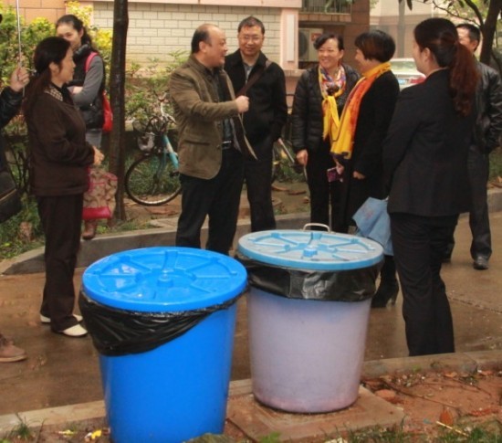 本网讯(通讯员 陈赞)2013年11月22日上午,市政环卫处主任毛社高同志带领生活垃圾分类试点推进工作办公室工作人员,协同高新区市政绿化环卫处和西陵区市政环卫处主要负责人,对部分生活垃圾分类试点单位垃圾分类推进情况进行跟踪督办。