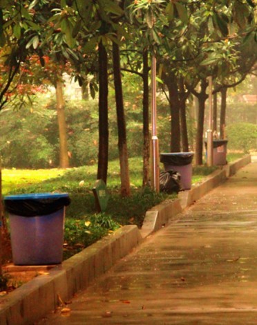 深圳路小学整齐摆放的容器