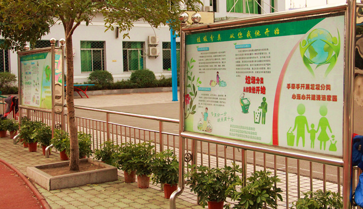 伍家岗区实验小学,除了随处可见的宣传标语、宣传栏、大型户外垃圾分类广告,还设置了不同颜色的垃圾分类箱,让孩子们真正做到垃圾分类,从我做起。区实验小学垃圾分类采用干湿分类方式,由不同车辆分开运输送至黄家湾垃圾处理厂发酵仓作堆肥处理。该试点垃圾分类收集工作运行情况良好。