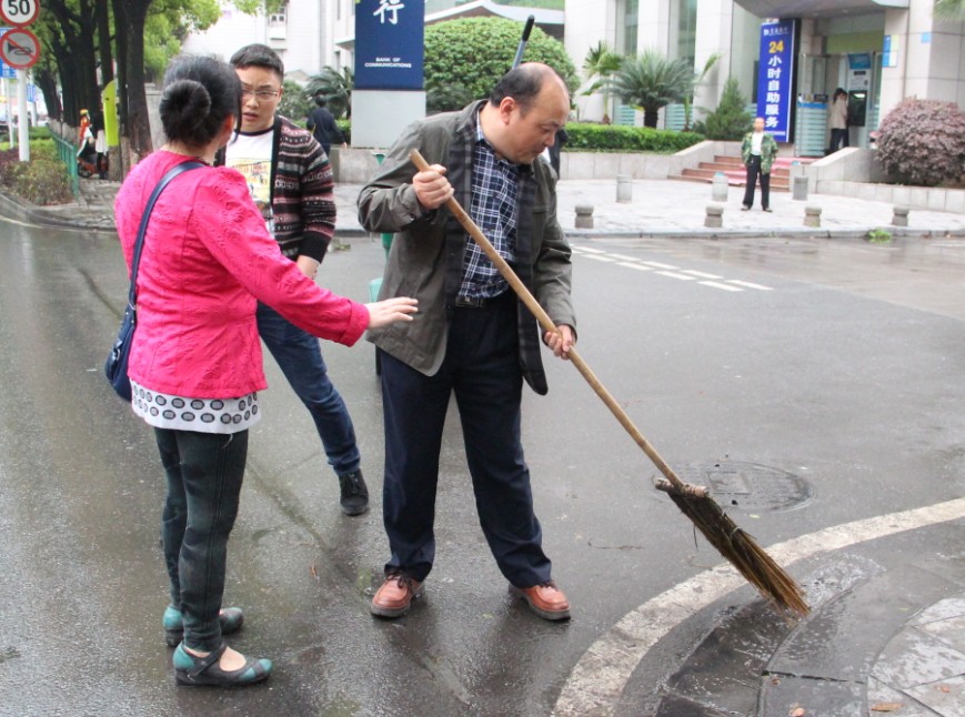 在胜利四路垃圾中转站附近,毛社高找到了正在进行保洁作业的环卫工人梅德香,用她手中的扫帚做起了保洁工作。边作业边聊起环卫工作的苦与乐。梅师傅告诉毛社高,这把扫帚是去年从深圳引进的,与过去用的扫帚比有很多的优越性,但在使用方法上有技巧,毛社高用不同方式操作对比,告诉梅师傅要发动职工不断积累经验提高工作效率。昨天宜昌各大媒体刊登了全市环卫工人将实行绩效工资的新闻,毛社高问梅师傅环卫工人对此的看法,梅师傅喜形于色地告诉毛主任,工友们都非常高兴,感谢各级领导对环卫工人的关心,增加的工资部分可以解决工人日常生活中的很多实际问题。在换位体验中,毛社高还征求了梅师傅对环境卫生管理工作的意见和建议,表示将认真对待和处理每一条意见和建议。离开保洁现场毛社高立即赶到伍家岗区市政环卫处借雨扫路的试验场地现场察看情况。