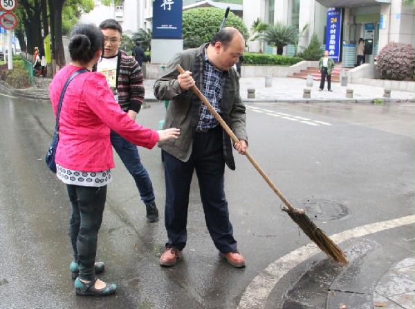 本网讯(通讯员 熊道奎)4月11日上午,市政环卫处党总支书记、主任毛社高到胜利四路清扫现场换位体验环卫工作。