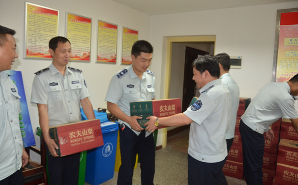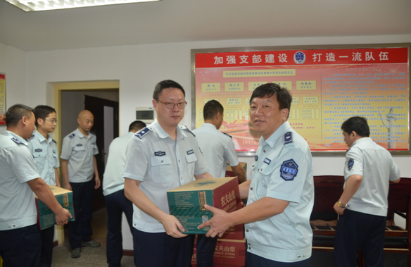 本网讯(通讯员 武昆)骄阳似火,酷暑难当,支队领导班子心系职工,开展“送清凉”活动,在炎炎夏日给坚守岗位的职工送上了丝丝凉意。