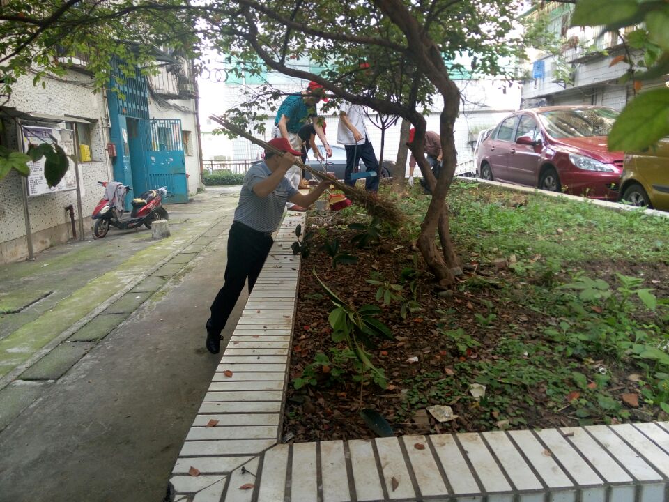 为了迎接国庆节的到来,按照《市城管委、市文明办、市爱卫办、市直机关工委〈关于建立周末卫生日制度的通知〉》要求,桥隧处党支部书记、主任叶定军带领5名工作人员来到西陵区珍珠路社区,与社区工作人员一起联合开展义务劳动。大家头戴小红帽,手拿扫帚、铁锹,有的拔草,有的捡拾砖块等杂物,有的清运建筑垃圾,还有的清理卫生死角。通过大家的辛勤劳动,小区内环境焕然一新,受到辖区内居民的一致好评。