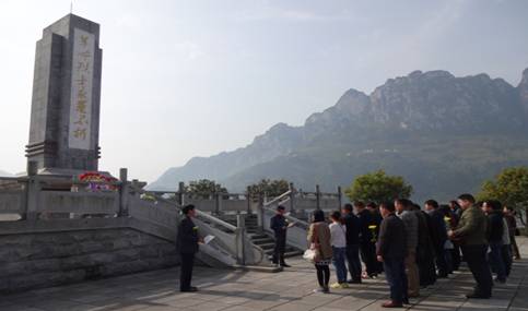 本网讯(通讯员 陈晓旭)4月1日上午,监督指挥中心组织党员干部、团员青年、职工近50人,到夷陵区乐天溪镇莲沱村的“九、四”纪念碑,开展缅怀革命先烈祭奠活动。祭奠仪式由中心党支部副书记郭建新主持。
