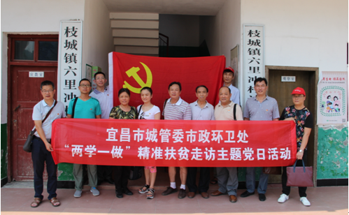 本网讯(通讯员 陈赞)2016年8月19日,宜昌市城管委市政环卫处党总支书记、主任毛社高带队,组织十二名党员干部,走进市环处对接的扶贫村--宜都市六里冲寸,开展“两学一做”手牵手精准扶贫主题党日活动。