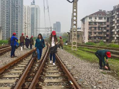 志愿者队伍从绿萝路铁路入口出发,分两组分别向相反方向沿线拾捡暴露垃圾,对于周边严重暴露堆放的死角就地通过E家上报案件,今天参加志愿者服务的职工共计11人,服务线路3.5公里。