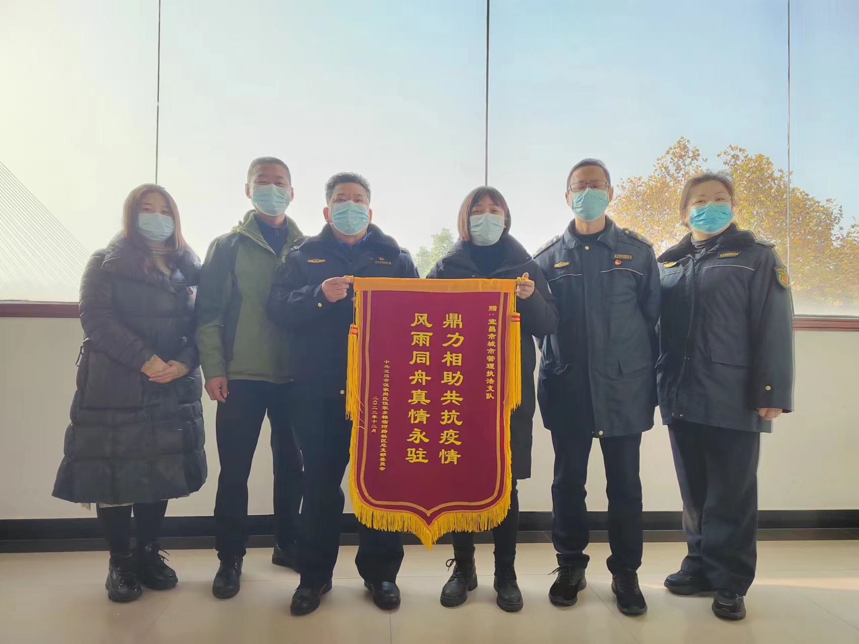 近日,市城管执法支队筑堡包联社区柏临河社区书记张钦羽携社区工作人员,来到宜昌市城市管理执法支队赠送锦旗,对支队在社区疫情防控最艰难时期疫情防控作出的贡献表示感谢。