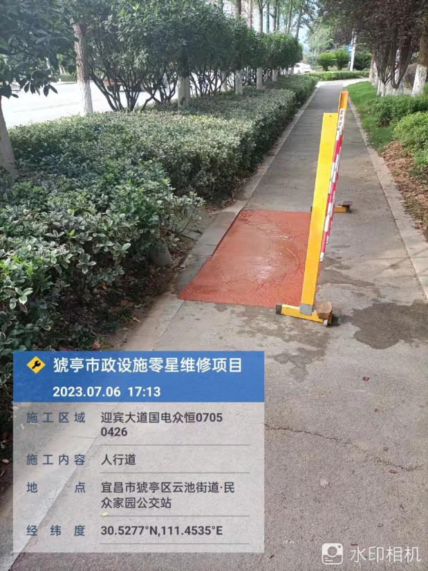 按照安全隐患必须第一时间进行排除与处置的工作原则,工作人员当即将该办件列为紧急办件,下达指令要求猇亭区城管局迅速对此处进行警示和围挡,同时安排施工力量立即修复,处置情况需通过平台第一时间反馈,猇亭区城管局接收平台指令后,行动迅速,闻令而动,当即组织人员、设备进行修复,当日下午5点多破损人行道已经修复规范完毕,并且现场设置临时围挡进行提示,从问题发现到处置完毕仅用来3个多小时时间。