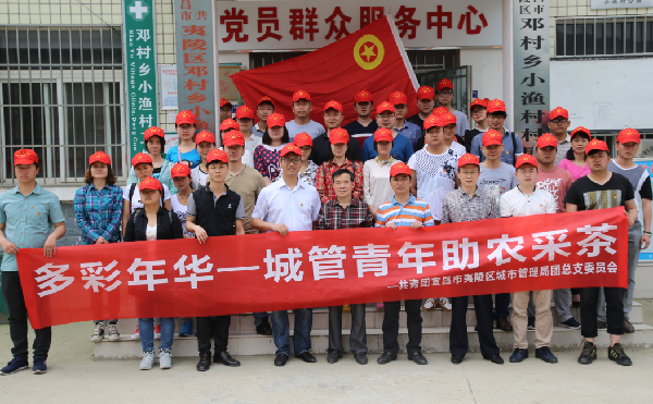 本网讯(通讯员 崔琴邓青)为更好的发挥城管系统青年团员的先锋模范作用,增加团队凝聚力,4月29日,区城管局团总支组织局属二级单位青年团员50余人来到邓村乡小渔村开展了以“多彩年华——城管青年助农采茶”为主题的迎五四青年活动。夷陵区团委书记刘勇和区城管局工会主席陈天华参加活动。