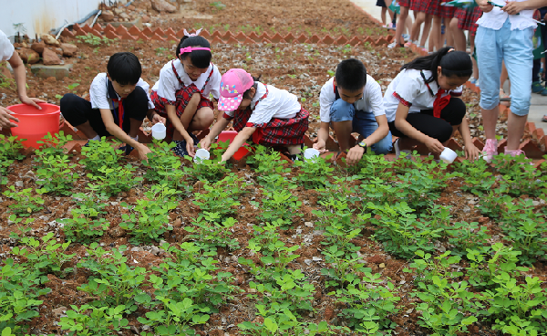 为了让同学们更好的践行绿色环保、把垃圾变废为宝,老师将他们带到环保科普示范园地,教他们利用堆肥土种植蔬菜,利用环保酵素稀释的水浇灌。丰富的课外活动,不仅让同学们亲身体验践行绿色环保的乐趣,同时也让他们学会了垃圾分类的方法。
