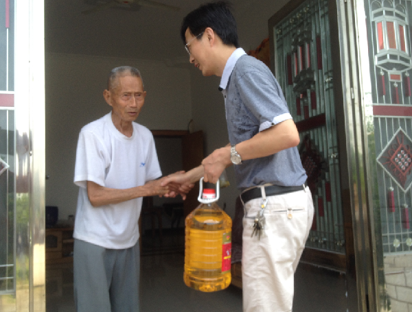 本网讯(通讯员 宋词)7月1日,正值中国共产党成立94周年的光辉节日,点军区城管局党组机关党支部部分党员带着浓浓深情来到联系点艾家镇艾家村的一起老党员们过了一个特殊的生日。局党组书记代平一行扛(提)着大米和油,深入艾家镇艾家村老党员家中进行了走访慰问,为他们送去了党的温暖和关怀。