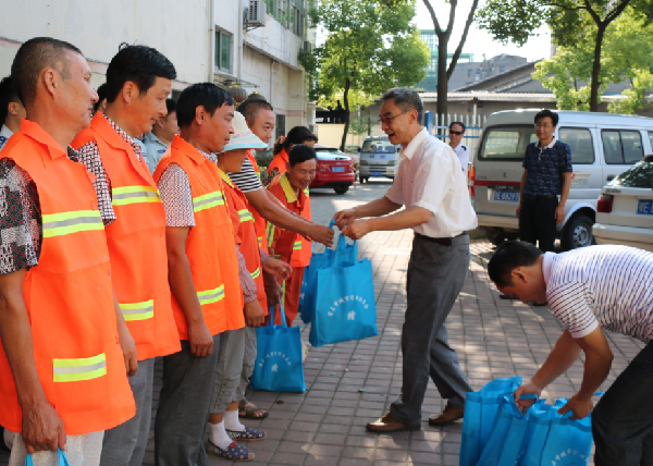 申立志亲自将一份份防暑降温物品送到环卫工人和城管队员手中,并同大家亲切握手,再三嘱咐大家在户外要注意做好防暑降温工作,适当调整作息时间,在保证身体健康的同时,以更大的热情投入到城市管理工作中去。