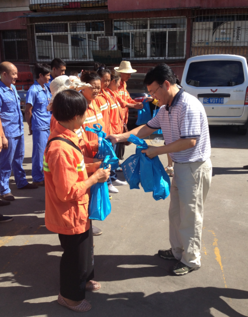 本网讯(通讯员 徐耀龙 黄鹏)8月4日上午,西陵区总工会“三送”活动(送清凉、送法律、送安全)来到宜昌桑德环卫有限公司,区总工会领导看望慰问了部分一线环卫工人代表,并为全体环卫工人送去装有生活用品、《职工劳动权益法律常识》和《建筑工程安全生产教育内容汇编》的“清凉包”500余份,受到了环卫工人的热烈欢迎。