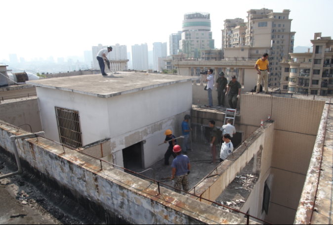 伍家岗城管:长江瑞景楼顶违建开拆