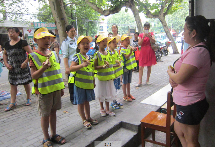 “打竹板,响连天,叔叔阿姨听我言。人民城市人民管,人人都是管理员。”学生专门为此次活动创作了一个小快板。15名小学生和部分家长被分成3个小组,分别在城管局执法人员的带领下,到城乡路、城河大道和文峰路跟随体验城管执法社会实践活动。城乡路一商家的拖把挂在绿化树木上,体验学生鲁扬波在执法队员指导下,取下拖把,放置到商家店内,5名小学生站成一排,集体打起了小快板,提醒商家配合城管叔叔阿姨把城市管理好。