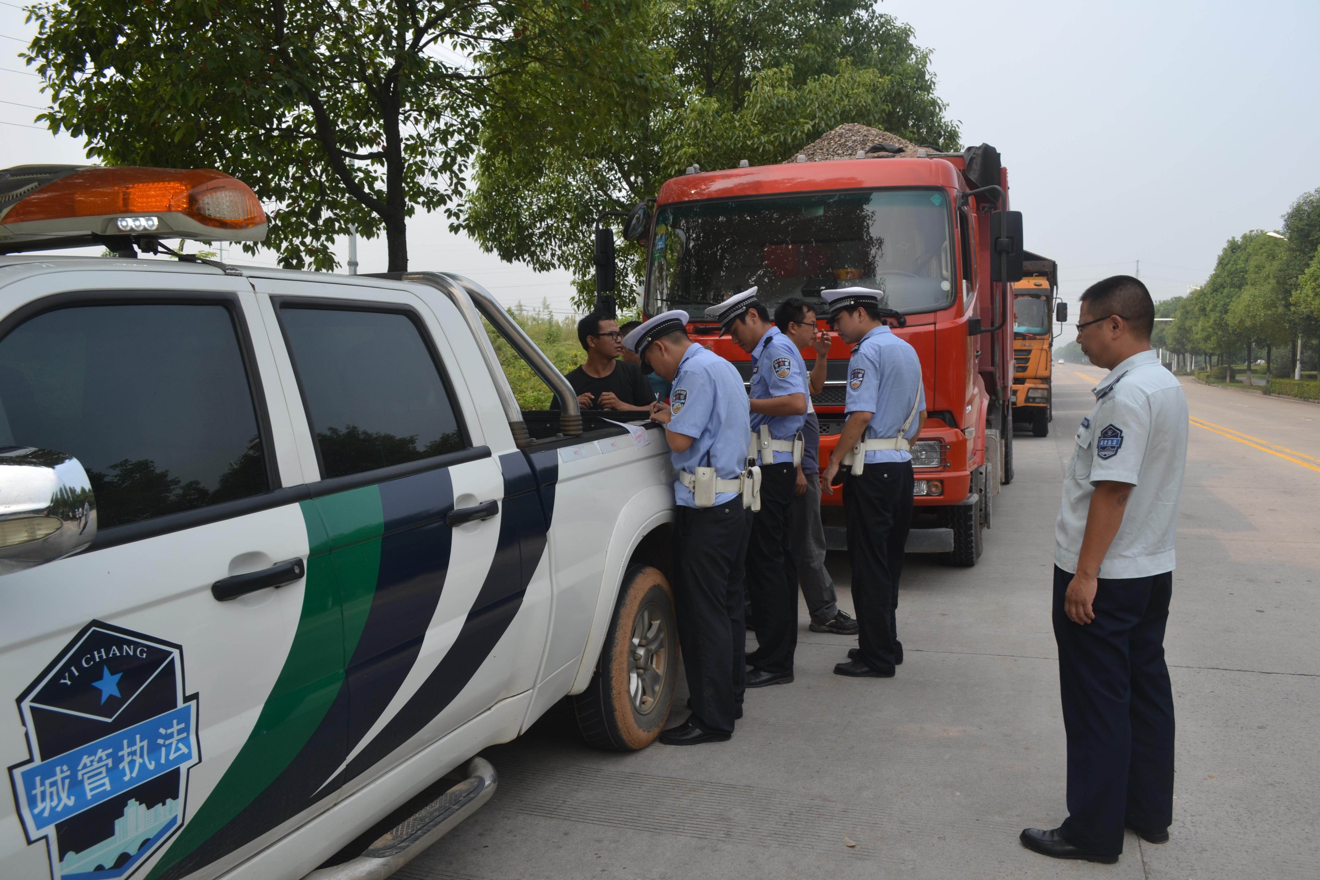 猇亭城管:联合交警整治违规渣土车辆