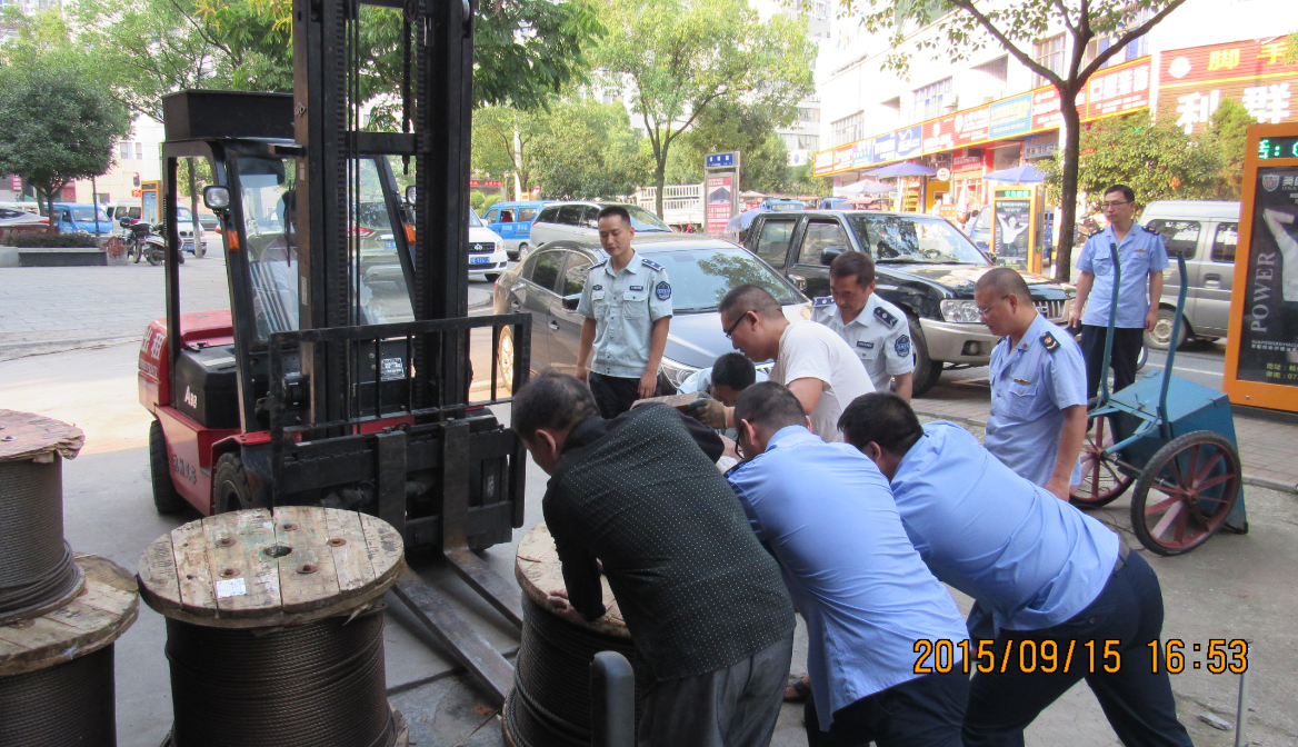 本网讯(通讯员谭志智)9月15日,秭归县城管局、工商局和“包片责任单位”秭归县住建局联合组建了12人的工作专班,动用了两辆吊车和一辆叉车,对杏花村各建材门店的出店、占道等严重影响市容市貌的违章乱象进行了综合整治。