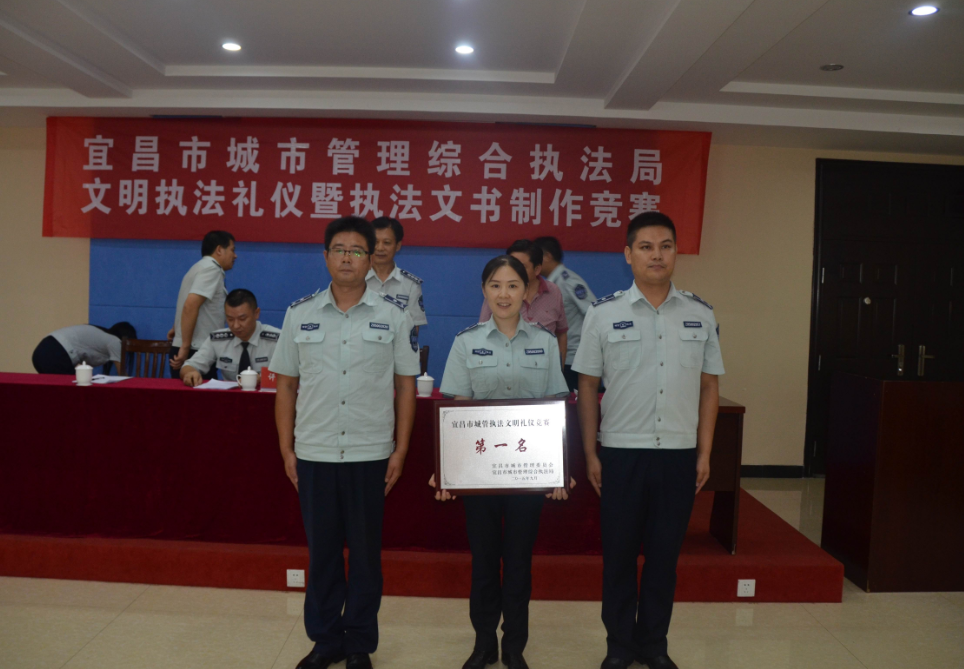 本网讯(通讯员 谭鹏君)9月28号下午,由宜昌市城管委、市城监支队主办的城管执法人员文明礼仪竞赛落下帷幕,伍家城管代表队在参赛的7支队伍中脱颖而出、一举夺魁。