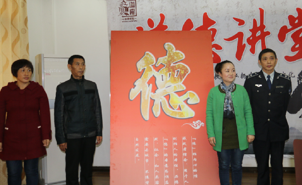 根据文明单位创建要求,县城市管理局此次“道德讲堂”安排了“自我反省、唱歌曲、学模范、诵经典、发善心、送吉祥、向“德”鞠躬、做善事”八个环节。在“唱歌曲”环节,所有参加道德讲堂的党员干部职工齐声高歌《三大纪律八项注意》,大家又一起吟诵了《为人民服务》,在“学模范”环节,特邀了获得“最美在基层·首届中国人口十大杰出人物”的获得者周丽蓉讲述了自己的感人事迹,城管局下属的园林局李世翠同志、环卫局李军林同志、监察大队覃黎明同志讲述了自己和身边的人爱岗敬业事迹,通过一些小故事中让大家感受到平常中的伟大、平凡中的坚守。最后,现场部分职工代表发表了道德感言,与大家分享参加"道德讲堂"专题讲座的感想和人生感悟。