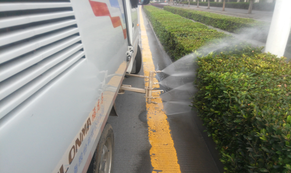 由于高新区各路段车流量较大,排出的大量尾气和扬尘覆盖住了绿化带的植物,为使植物恢复本色,有效增加绿化苗木对空气中污染物的吸附、净化能力,区市政绿化环卫管理处安排加装有高压冲洗喷头的冲洗车,每天对绿化带的苗木冲洗一次,着重冲洗对灰尘覆盖最严重的植物侧面。为避免环卫作业清扫对绿色植物造成二次污染,绿化带植物冲洗作业一般安排在夜间进行。该区欲将绿化带高压冲洗和灌溉相结合,纳入财政预算,进行常态化管理。