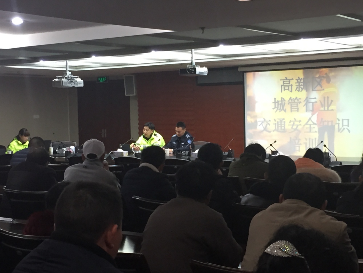 为增强交通安全意识,提高自我防护能力,高新区市政绿化环卫处邀请区交警大队办案经验丰富的警官来授课。以环卫工人交通事故为案例,通过现场图片资料,详细分析了造成交通事故的原因,指出了环卫工人在道路上作业时存在的安全隐患,如思想麻痹大意,疏忽了必要的安全防护措施;不按规定着反光衣,使用反光锥等。并提出要改正贪图方便随意横穿马路、随意跨越公路隔离设施等不文明交通陋习,遵守交通法规和环卫操作规程,按规定着反光衣,做好各项防范措施,在确保自身安全前提下进行作业。