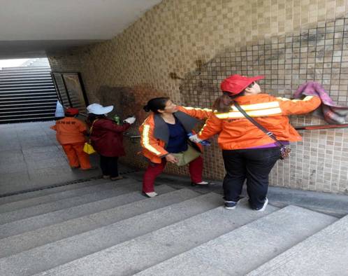 西陵城管:地下通道惊现涂鸦 环卫工人“忙”坏了
