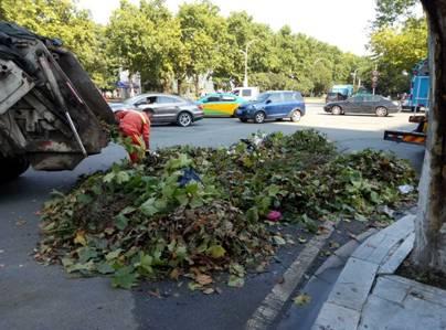 7月28日一早,为避免暴雨过后道路上残留的大量淤泥和树枝杂物影响到市民出行,环卫工人们早早的便又开始了清理工作。