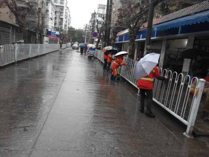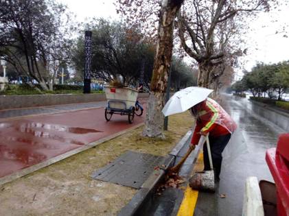 本网讯(通讯员向安娜 邵安)2月21日至22日,我市气温骤降、大雨瓢泼,路上的行人少了不少,但西陵区的环卫工人们却没有休息,他们毅然坚守在一线,冒雨作业。