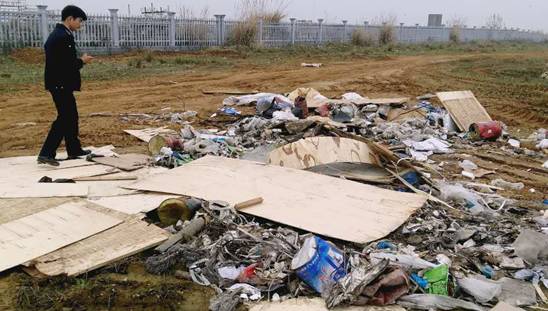 2017年4月5日上午,渣土办执法队员在对全区前期摸排的建筑垃圾易倾倒地点进行巡查时发现,车站路中兴汽车二期项目用地上被倾倒了大量建筑垃圾。执法人员第一时间展开调查,通过走访居委会和周边群众得知该处为附近一企业内施工队为省工省油贪图方便,将施工过程中产生的建筑垃圾倾倒所致。