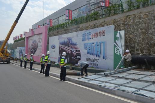 本网讯(通讯员高雪娇)为积极贯彻落实猇亭区“绿色猇亭三年行动计划”,全面实施透绿工程,今日早上9点,猇亭区城管局组织20多名执法人员,10多名拆除工人及1台大型机械设备对先锋路与机场路交叉口的10多块连体大型户外广告招牌进行了集中拆除,拆除面积1200余平方米。