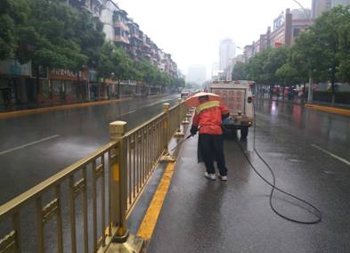 西陵城管:借雨给行车标线“洗澡”