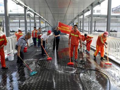 西陵城管:开展义务劳动 给天桥“大扫除”