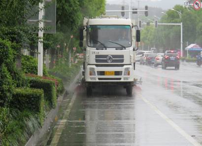 “借雨洗路”是环卫作业的一种新模式,采用先冲洗、再清扫相互配合的方式进行作业。