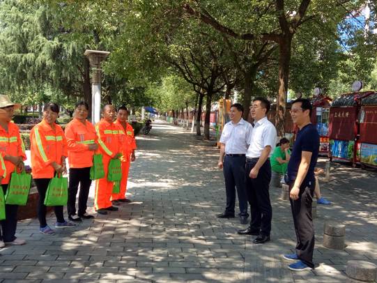 烈日炎炎,热浪滚滚,而“城市美容师们”为维护我们城市的干净整洁仍然奋战在大街小巷。县总工会没有忘记他们,7月19日,县委常委、宣传部长、县总工会主席雷青松一行在工作一线为县城150多名环卫工人送来了毛巾、降暑药、红白糖等慰问品,向县城美容师们表达诚挚的关切和敬意。