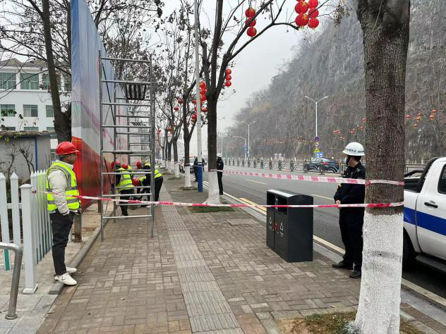 户外广告自查自纠,全面排除安全隐患。全区开展户外广告专项整治行动,对辖区主要道路两侧违规设置的各类户外广告、大型广告开展全方位整治。1月14日,点军城管大队对江南大道27中路段的立面广告进行拆除,并提前做好安全警戒标识,此次行动共计出动执法队员7名,拆除面积210平方米。